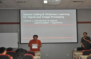 段晔博士是美国知名的计算机图形学专家,从事计算机视觉,生物医学图像等研究多年,取得了丰硕的成果。此次的系列报告段晔博士主要为大家讲解了目前计算机图像处理中最为流行和有效的稀疏编码和字典学习方法。从稀疏代表方法的概念以及相关算法的提出和具体实现过程,到算法的优劣特点和具体应用的适应性等问题,段晔博士深入浅出、声情并茂的讲解吸引了与会师生的兴趣,多名老师和同学也对此新技术发表了自己独到的看法。段晔博士指出,稀疏代表的方法不仅可以应用在计算机图形处理上,其同时适应几乎任何信号的相关处理比如:股市数据,声音数据,心电数据,CT数据等等。该方法在实际应用效果上已经超越了先前普遍使用的正则法或小波等方法。稀疏代表方法目前还出于发展阶段,段晔博士也鼓励与会的同学可以尝试在此方向上进行继续研究。