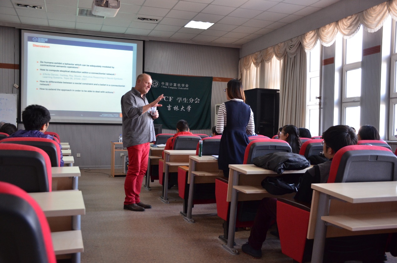 计算机学院副院长欧阳继红教授、计算机研究所副所长梁艳春教授的邀请,德国德累斯顿工业大学Steffen Holldobler教授来到我校为同学们做了知识表示与知识推理系列的学术报告。