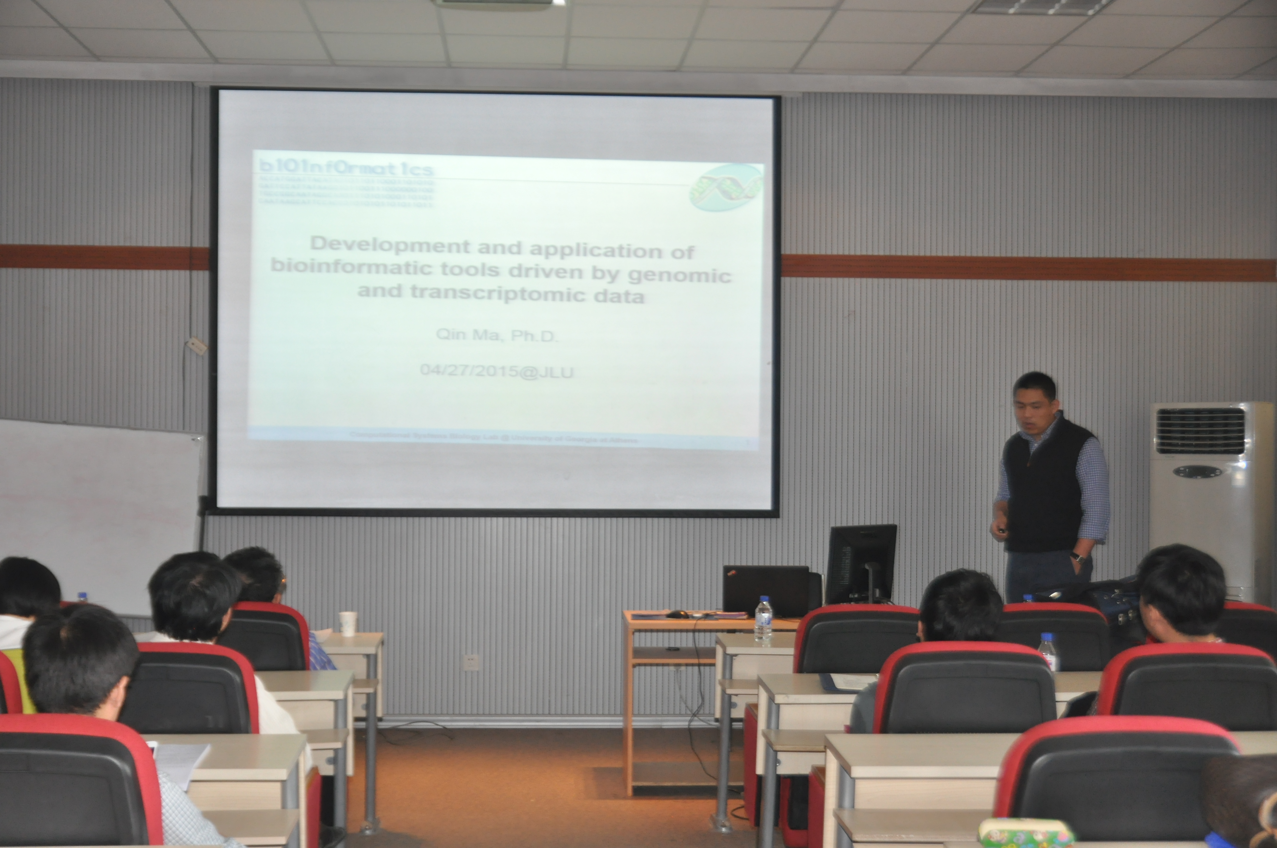 的邀请,于2015年4月27日上午,为全校师生作了题为“基于基因组和转录组数据的生物信息学工具的开发与应用”的学术报告。讲座由计算机学院梁艳春教授主持。