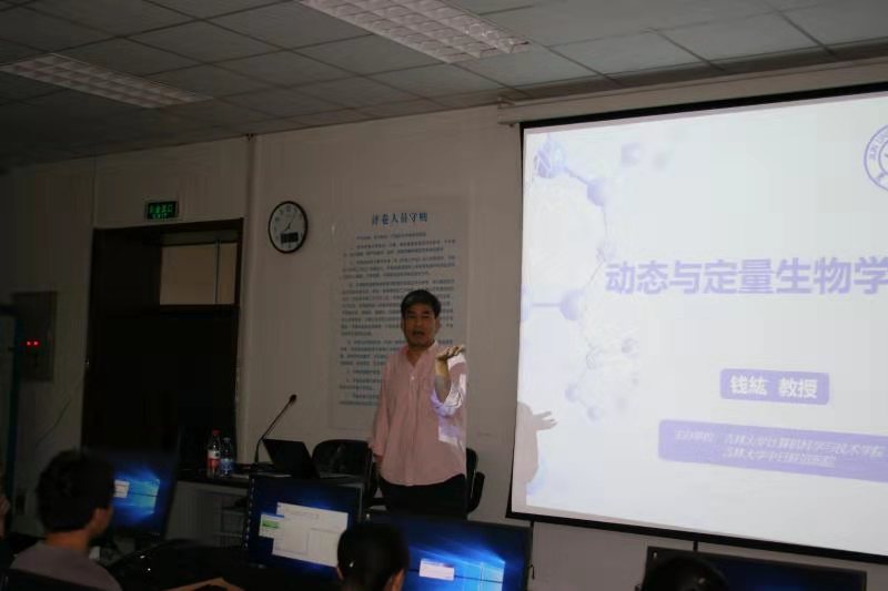 在本系列讲座中,钱纮教授从计算机、数学、物理、化学、生物等多门学科角度出发,综合讲述了物质的动态变化过程背后深藏的一次奥秘。并且分别着重阐述了一些课题研究,例如“放射性衰变和指数随机时间”、“离散时间动态”、“出生死亡和种群动态”、“化学反应分子力学中的非线性分支”、“基因调控网络的动态”、“反映扩散方程行波和模式的形成”等。讲座期间,钱纮教授多次与学员进行互动,共同探讨和研究,对学员的问题进行悉心回答。本次系列讲座受到广大师生的热烈反响。
