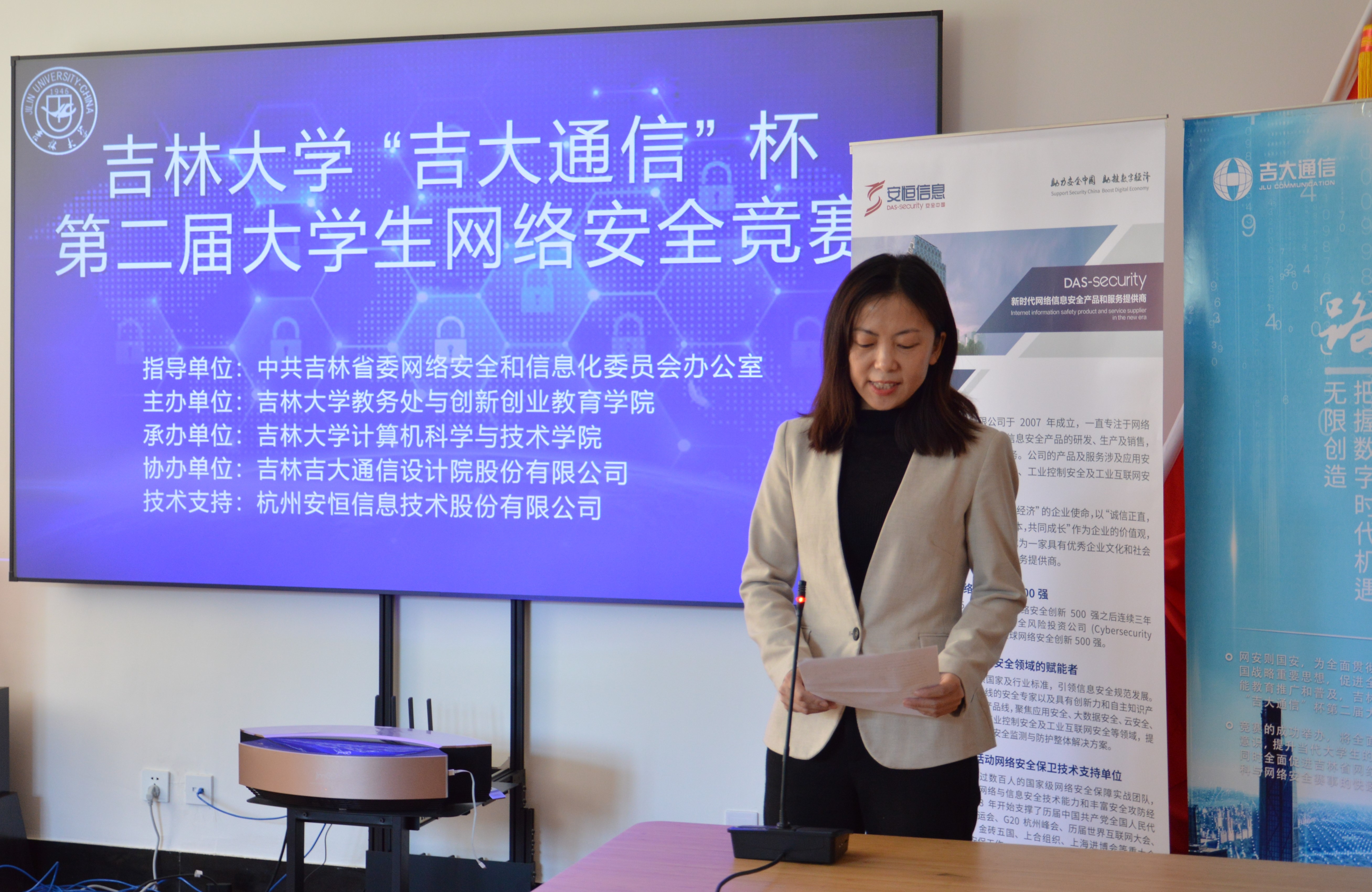 副院长黄岚教授发表了热情洋溢的讲话,她对获奖的同学表示祝贺,对协办单位吉林吉大通信设计院股份有限公司和技术支持单位杭州安恒信息技术股份有限公司的大力支持以及竞赛组委会的精心筹备表示衷心的感谢,并表示吉大人会“不忘初心、牢记使命”,av天堂