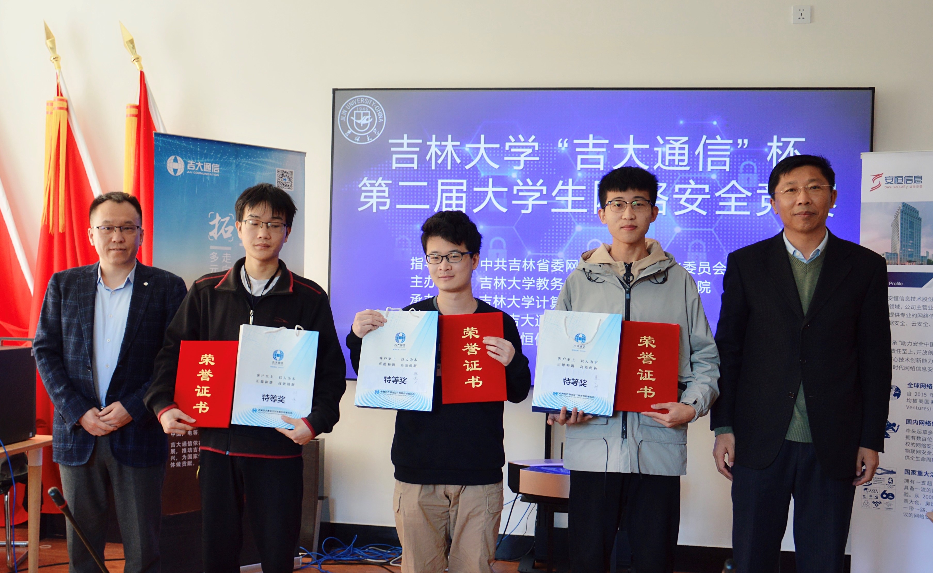 党委白江副书记,协办单位吉林吉大通信设计院股份有限公司于涛主任,技术支持单位杭州安恒信息技术股份有限公司东北区陈晖主任以及获奖学生代表和组委会人员参加了颁奖仪式。av天堂