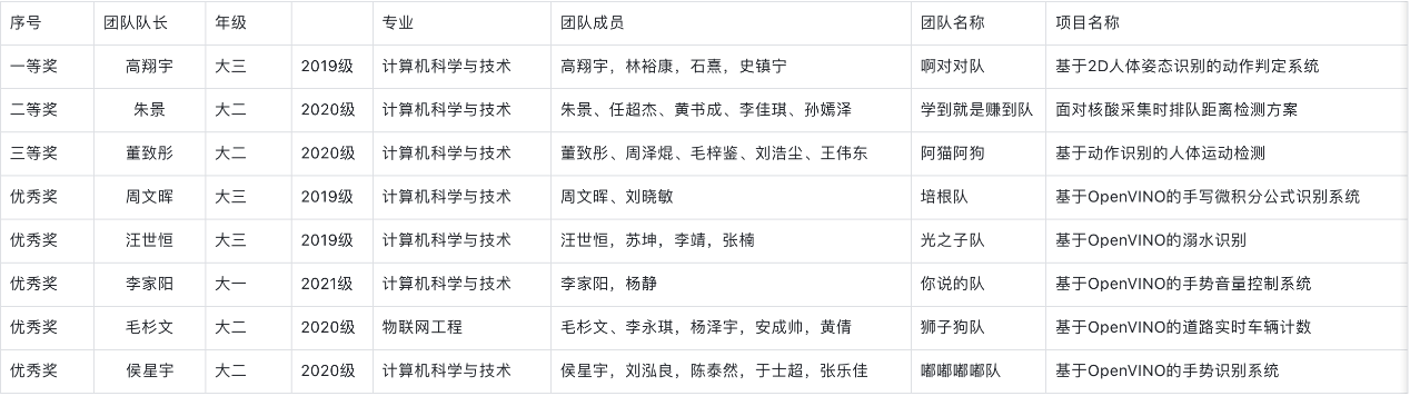 在接下来的三周中,同学们积极投入到组队、选题、项目制作及相关技术学习中,学习了人工智能深度学习及计算机视觉开发基础、OpenVINO™使用流程与典型应用案例等,实践了人工智能算法的部署推理及应用开发的完整流程。从项目选题创新,到确定技术路线,再到项目实施,同学们保持了极高的热情和认真的态度。在整个实践过程中,同学们加深了对专业知识和应用场景的理解,提高了技术学习能力,并做到了学以致用。同时,该过程培养了学生们的工程思维及团队协作等素质。