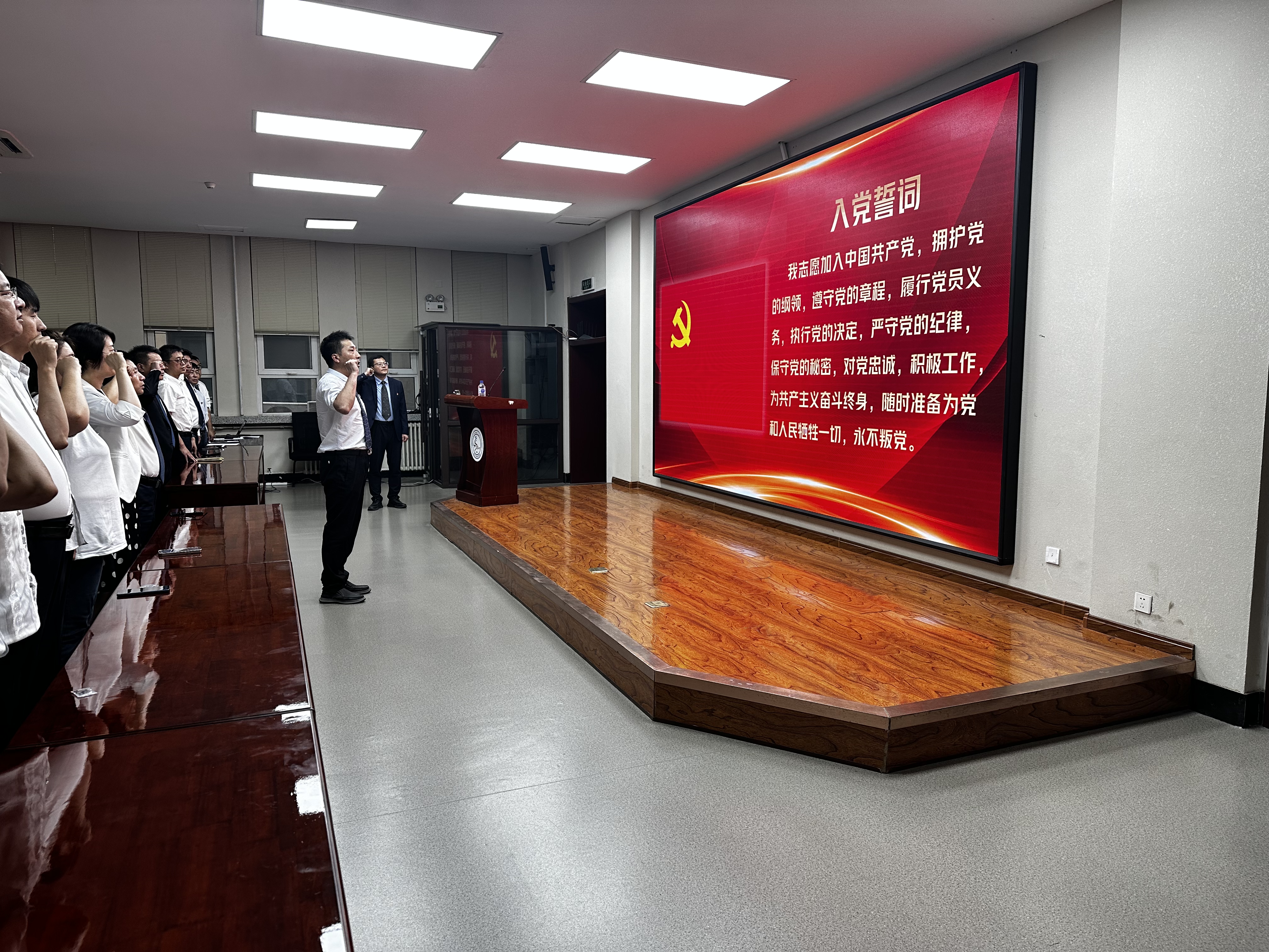 首先,党委副书记杜天宝同志带领与会全体党员面向鲜红党旗,重温入党誓词,用铿锵有力的誓言,表达对党的庄严承诺和为党为人民服务的坚定信念。随后,党委副书记高战国同志宣读了《中共av天堂 委员会关于表彰优秀共产党员、优秀党务工作者和先进基层党支部的决定》与会领导为获奖支部和个人颁发了荣誉证书。
