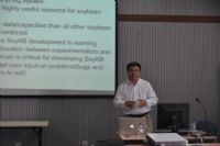 师生作了《关于大豆信息系统研究》的专题报告。报告会上,许东教授首先介绍了计算机学科以及生物信息学的国内外发展状况,给同学们带来了国际上最前沿的科学技术信息。并鼓励同学们以正确的姿态投入到科研工作当中。此外,许东教授结合其课题组近几年的研究工作成果,为大家系统的介绍了他们刚刚发布不久的大豆信息系统平台。该系统包含了当前世界上最完整、完善的大豆相关数据,并具有目前最科学有效的数据管理方法,是当前大豆研究中最佳的综合信息平台。从数据量上来看,许东教授与工作组所构建的系统存储有海量数据,是目前大豆研究最完整、最细致的数据库体系。多层面,多内容,从基因开始,包括小RNA,小分子,蛋白一直到植物性状都有非常详尽的数据;从数据组织模式来说,该系统把大量复杂程度极高的数据信息整合在一个框架之内,非常有效的进行管理,为研究人员和普通用户提供了细致入微,全方位个性化的服务。最后,许东教授也指出,该信息系统的主要目的是开创一种大豆研究领域内完整的、先进的大规模数据组织体系,为相关研究人员提供清晰高效的科研辅助,为工业生产提供便利、降低成本,为世界农业,尤其是大豆的育种提供有效的指导性信息支持。