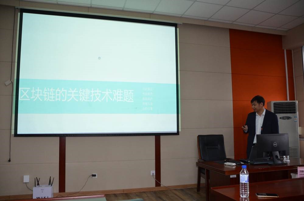 邀请,在计算机楼A521作了题为“区块链—开启价值互联网新时代”的学术报告。
