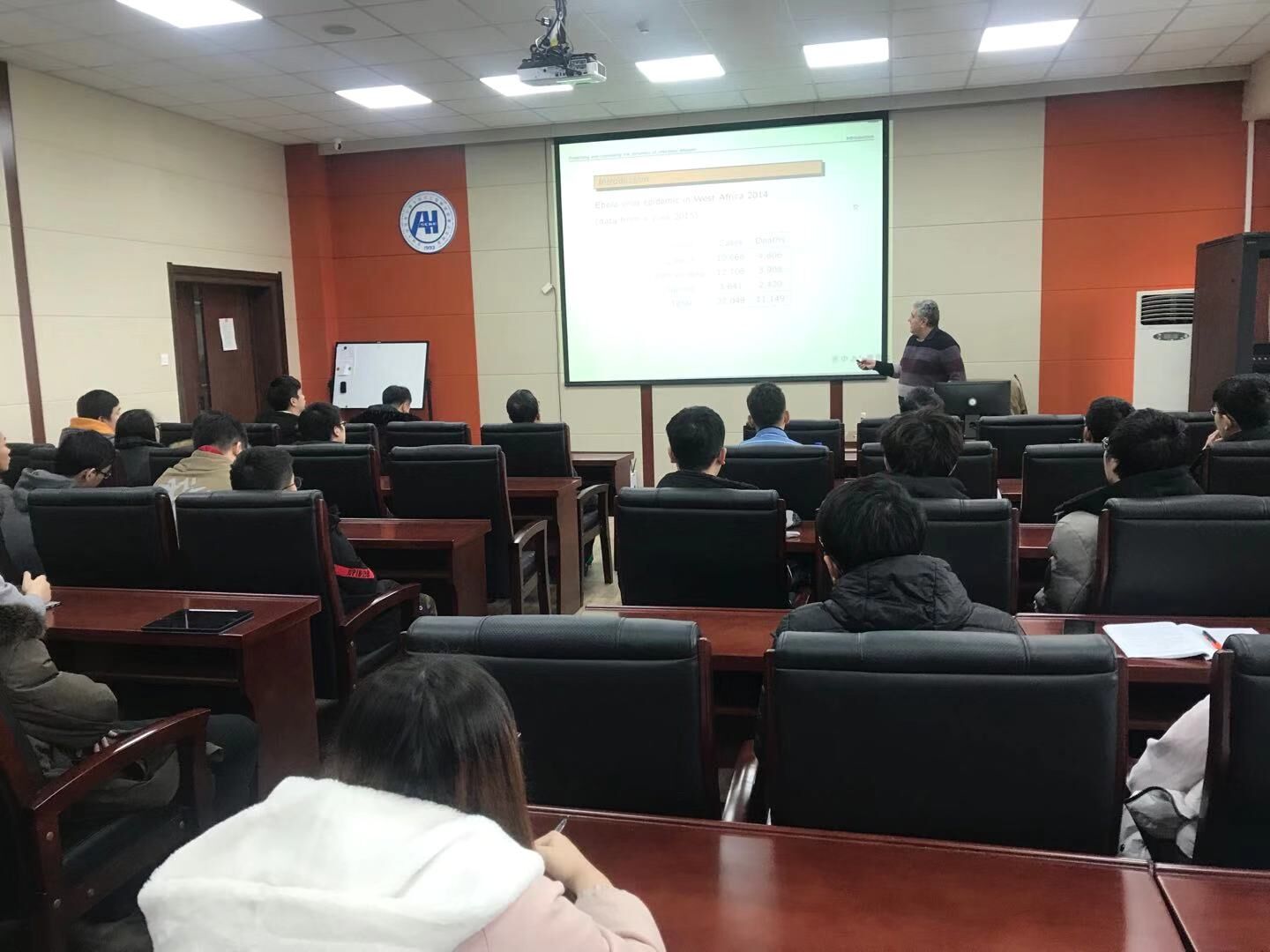 本次演讲中,Musa Mammadov博士主要介绍一个新的最优控制模型来描述和控制传染病的动态。所有预防措施的目的都是在给定约束下减少隔离的平均时间。该方法是根据2014-2015年期间西非埃博拉病毒传播的数据开发的。基于简单的线性模型,估算了整个流行期间以及随后不同时间间隔的繁殖数量。它包含一个主要参数-定义流行病动态的平均传染性时间。对从几内亚,塞拉利昂和利比里亚三个国家收集的数据以及全世界收集的总数据进行了数值实施。报告赢得了计算机学院师生的热烈响应,到场师生踊跃提问和交流,取得了良好的互动效果。