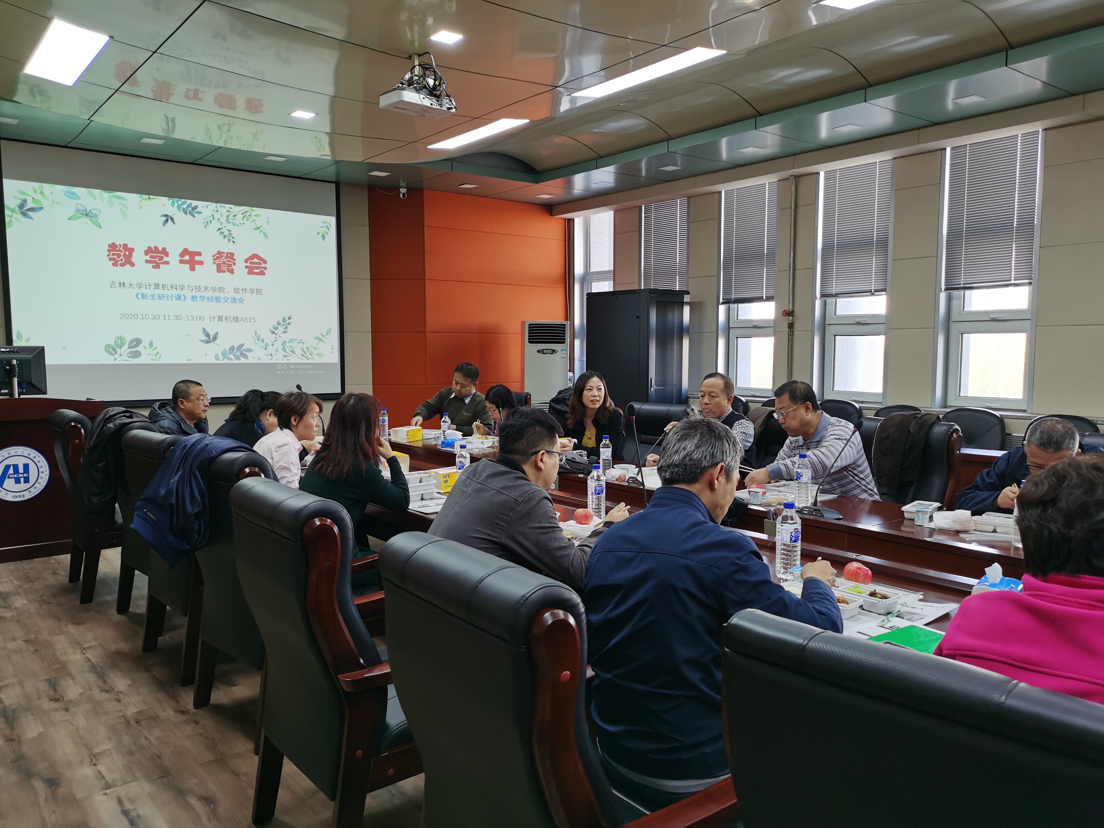在计算机大楼五楼会议室举行了首次教学午餐会。本次交流主题是新生研讨课授课经验交流,学院19个梯队选派相关授课教师代表参加了本次会议。会议由学院主管本科教学的副院长黄岚开场,学校督学员胡成全教授和杨永健教授主持。