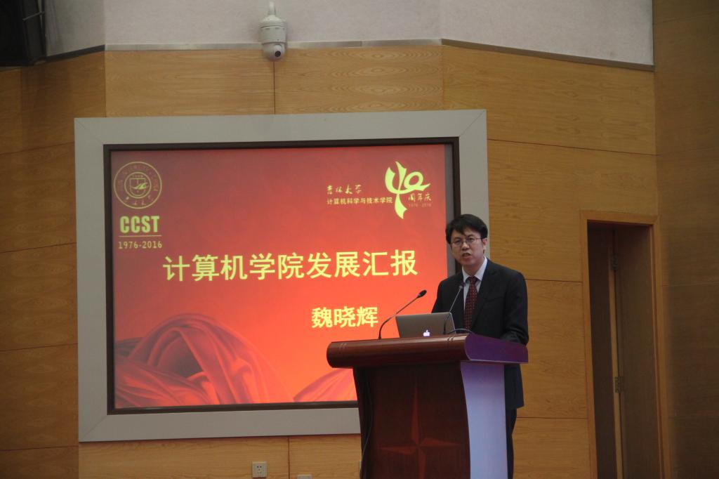 最后,计算机学院院长魏晓辉教授向大家汇报计算机学院发展历程。他按时间顺序从建系前期、建系与发展、院系合并、发展现状等方面回顾了学院的历史及发展,介绍了学院现有的18个研究团队和5个研究方向,并指出了学院所取得的成绩和存在的不足。感谢兄弟院校和学校领导的大力支持。号召全院师生凝心聚力、改革创新、立志图强,为把av天堂