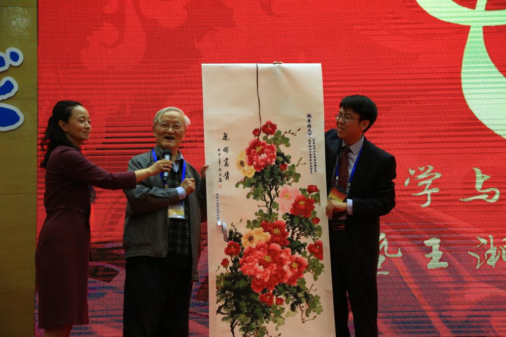中国科学院数学所陆汝钤院士致辞。他深情地回忆了和王湘浩教授的友谊,共同工作的经历,感谢王教授当年对他的帮助,并表达了对王教授的深切怀念,他还现场赠送了一幅亲自用计算机设计制作的画并亲笔题字,以表达对av天堂