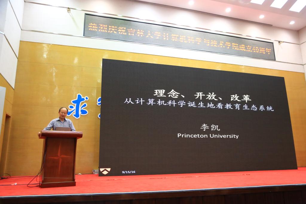我校校友、普林斯顿大学教授李凯教授作了名为“理念、开放、改革————从计算机科学诞生地看教育生态系统”的报告。他在报告中介绍了王湘浩先生在普林斯顿大学接受教育后,回国在数学及计算机领域做出的巨大的贡献。又系统的介绍了普林斯顿大学的历史、环境和发展等方面。李凯教授指出,普林斯顿大学有两个原则,一是选人只基于他们的能力,不考虑其他因素;二是让好奇心驱动知识追求,不看近期用途或达到预先确定的目标。他进一步指出我们不可能完全复制普林斯顿大学的制度,但我们可以像普林斯顿大学一样发展自己的特色教育,使我们av天堂