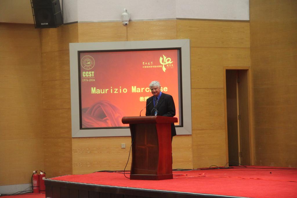 王湘浩奖学金管理委员会致辞。他介绍了王湘浩院士在科学上的杰出成就,在教育事业上建立的卓越功勋,以及王湘浩奖学金的由来发展,并感谢社会同仁和广大校友的无私奉献和大力支持。接着,刘大有教授宣读了2016年王湘浩奖学金获奖名单,希望获奖学生能够珍视荣誉,戒骄戒躁,锐意进取,争取更大的成绩。