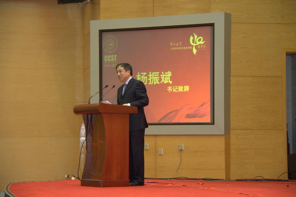 计算机学院在学科建设、人才培养、科学研究、服务社会方面取得的长足进步给予了肯定。杨振斌表示,学校将一如既往地支持计算机学院发展,希望计算机学院全体师生开拓创新,继承和发扬王湘浩院士等前辈的优良传统,紧紧围绕学校中长期改革和发展规划纲要,积极落实学校“学术立校、人才强校、创新兴校、开放活校、文化荣校”五大战略,发挥计算机学科交叉能力强的优势,促进学校核心竞争力的提高,为av天堂