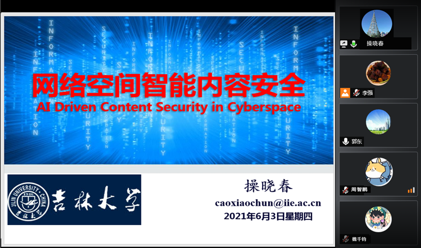 邀请,在线上作了题为“AI驱动的网络空间内容安全”的学术报告。