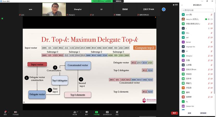 邀请,在Zoom会议作了题为”Algorithm and System Co-Optimized Big Data Analytics”的学术讲座,此次讲座由av天堂