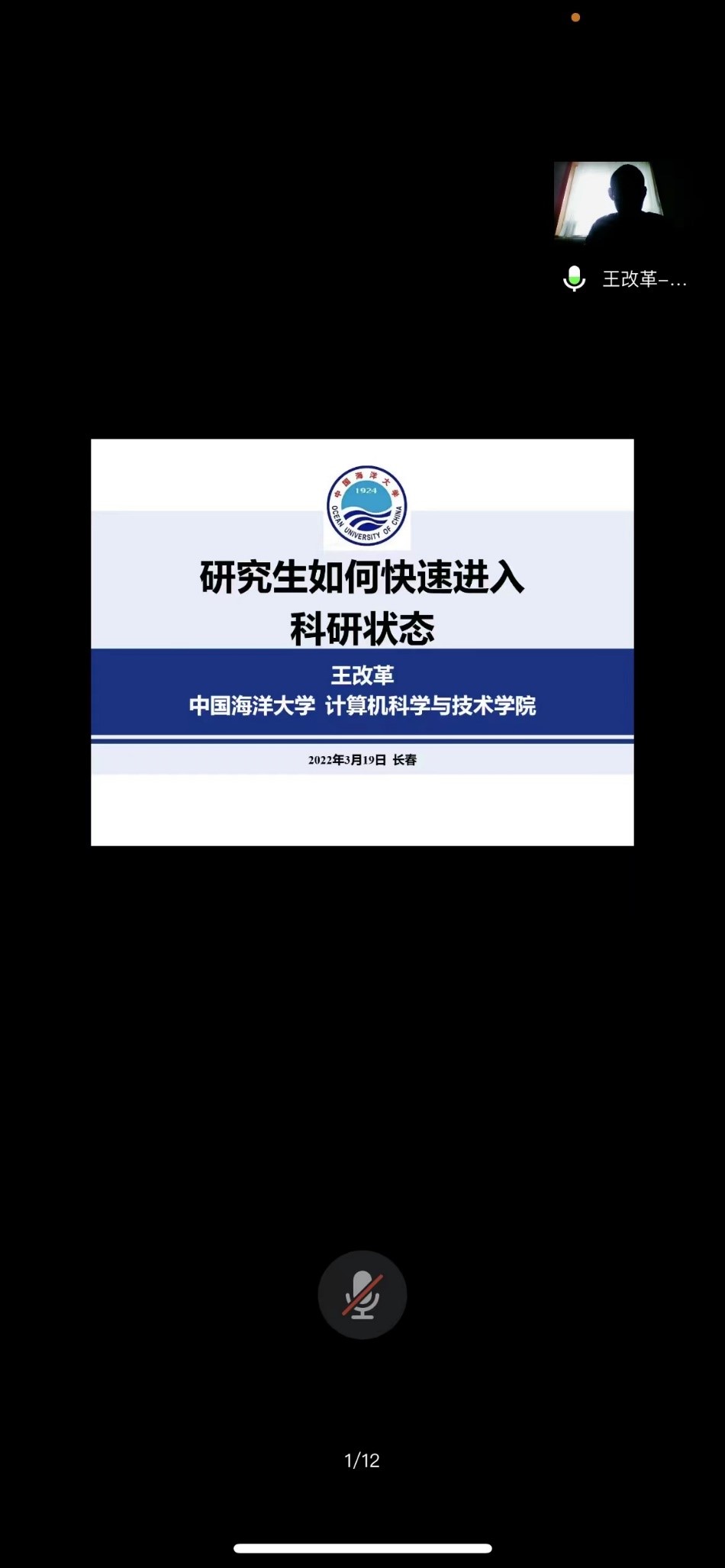 2022年3月19日 下午14:00,中国海洋大学王改革副教授应av天堂