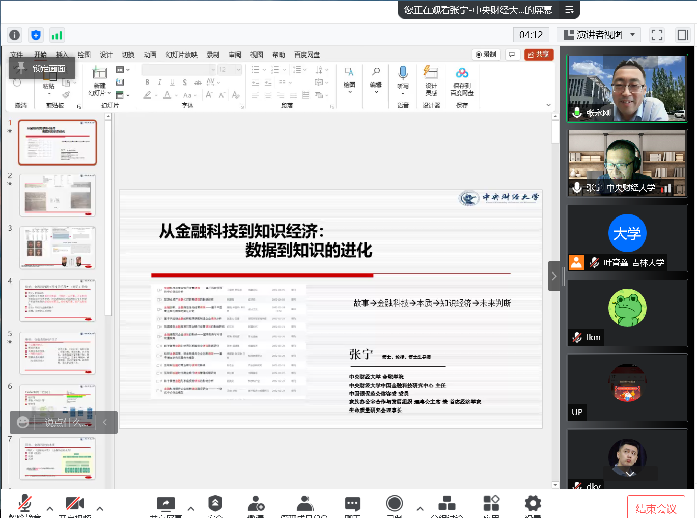 邀请,以线上会议形式作了题为“从金融科技到知识经济:数据到知识的进化”的学术报告,报告由av天堂