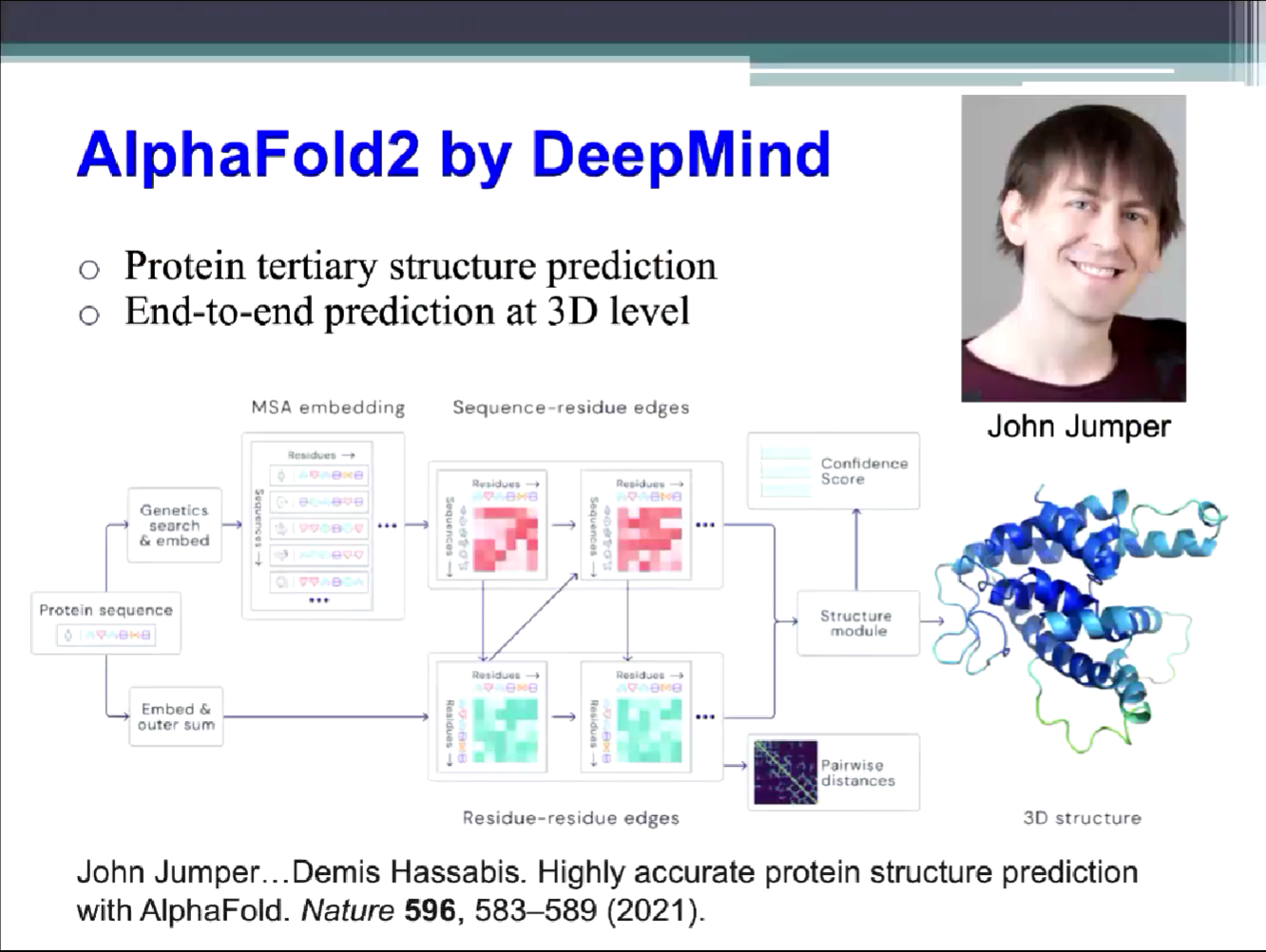 讲座开始后,许东教授首先介绍了深度学习模型通常需要各种设置和自定义参数来处理许多用例(例如,无训练标签或训练标签很少的情况)和应用程序要求(例如,用户隐私因素和具有低计算成本的模型),许多深度学习模型也因此被提出。在本场讲座中。接下来介绍了知识蒸馏相关知识,尤其是用于训练小模型以模仿经过预训练的更大的模型(或模型集合)的教师-学生模型,以及包含知识蒸馏的 BERT 模型等其它范例。此外,许东教授还解释了包括孪生神经网络在内的零样本和小样本学习,以应用于蛋白质结构预测领域的模型AlphaFold2为例深入浅出地讲解了端到端学习及其系统实现,并总结了在线学习、主动学习和联邦学习的主要技术。这些方法将帮助学生们在深度学习领域更进一步。