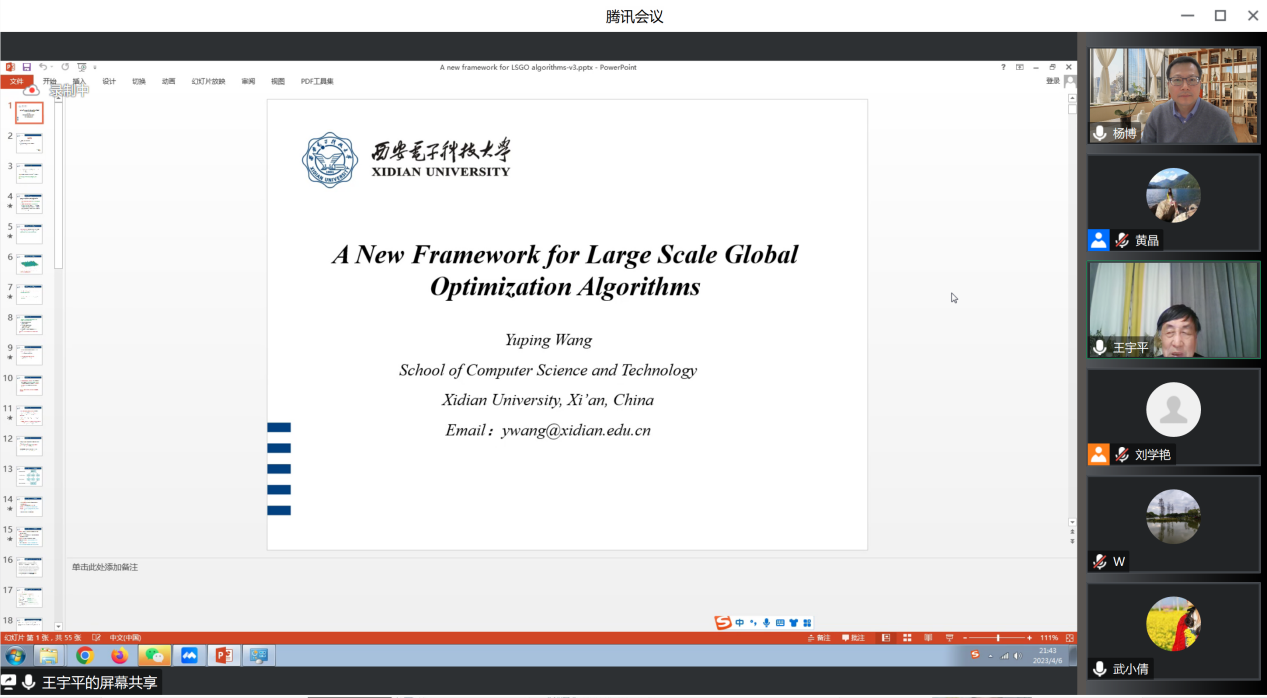 2023年4月6日晚上,西安电子科技大学王宇平教授应av天堂