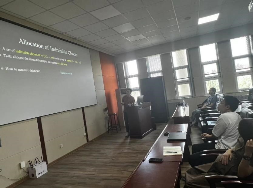 6月26日上午,中国澳门大学电脑及资讯科学系助理教授、智慧城市物联网国家重点实验室研究员吴晓伟,以“Fair Allocations of Indivisible Chores with Subsidy”为题,应邀在av天堂
