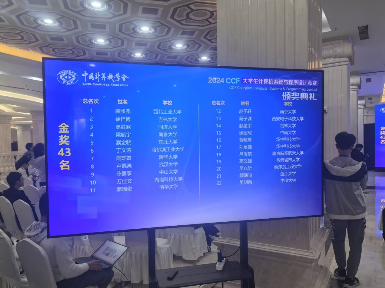 CCSP竞赛(Collegiate Computer Systems & Programming Contest,大学生计算机系统与程序设计竞赛),是由中国计算机学会(CCF)于2016年发起的一个面向大学生的竞赛,考察的不仅是编程能力,更注重考察大学生的计算机系统设计能力,是一项旨在提高高校计算机教育水平的全国计算机最高水平的大学生竞赛,学生通过竞赛进一步学习和掌握计算机系统知识,同时对高校计算机教育产生引领作用。CCSP竞赛已列入我校学科竞赛体系。每年举办一次,和中国计算机大会CNCC同时同地,参赛的同时免费参会。金奖约占10%,银奖约占20%,铜奖约占30%。前15名都有现金奖励,第1名奖金高达2万元。