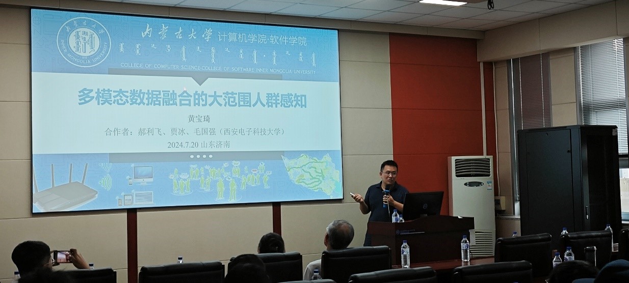 王湘浩楼A521作了题为“多模态数据融合的大范围人群感知”的报告。讲座中,黄教授首先介绍了内蒙古大学计算机学院的人才引进政策,以吸引优秀人才加入学术研究团队。