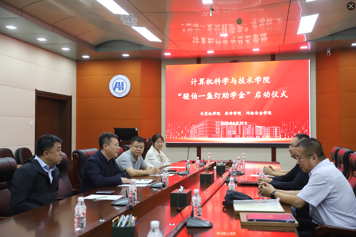 于2025年9月29日下午4时在王湘浩楼A515会议室举办“骏伯一盏灯”助学金启动仪式。学院党委书记宫皓宇、优秀校友李宇(广州骏伯网络科技有限公司董事长兼CEO)、党委副书记赵勇、副院长李昕及受助学生代表参加了本次活动。仪式由学院行政副院长李昕主持。
