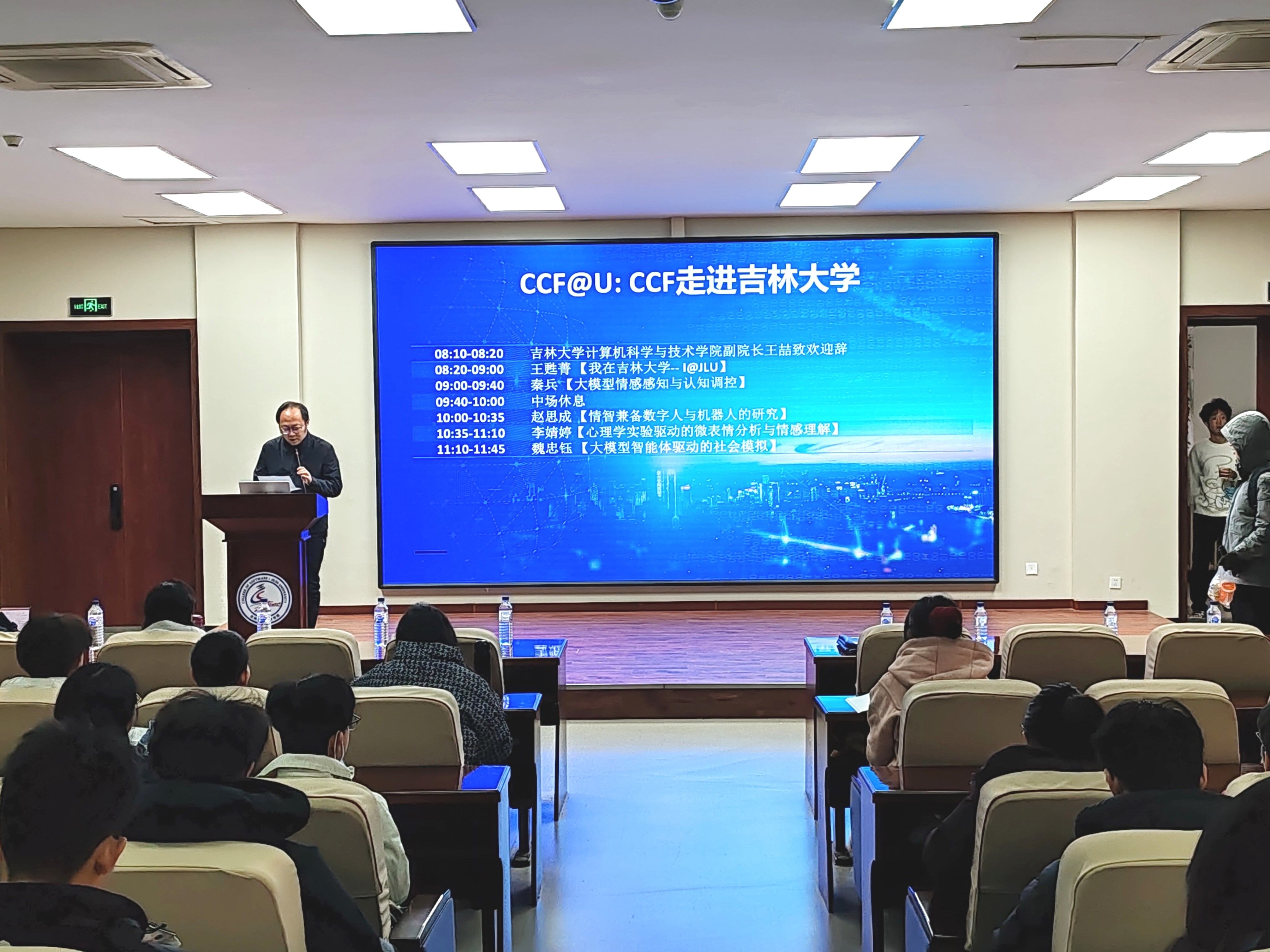 ——I@JLU》为题,分享了自己在母校求学时的成长历程与科研启蒙,并介绍了团队在无障碍智能技术方面的最新探索。王老师用自己的经历诠释了科研之路上的坚持与勇气,他在逆境中不懈求索的精神深深感染了在场师生,赢得热烈掌声。