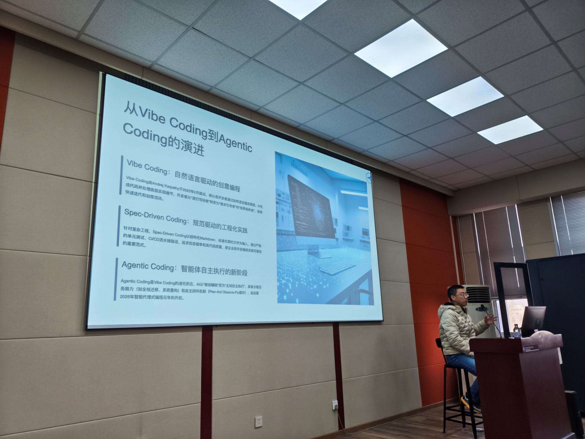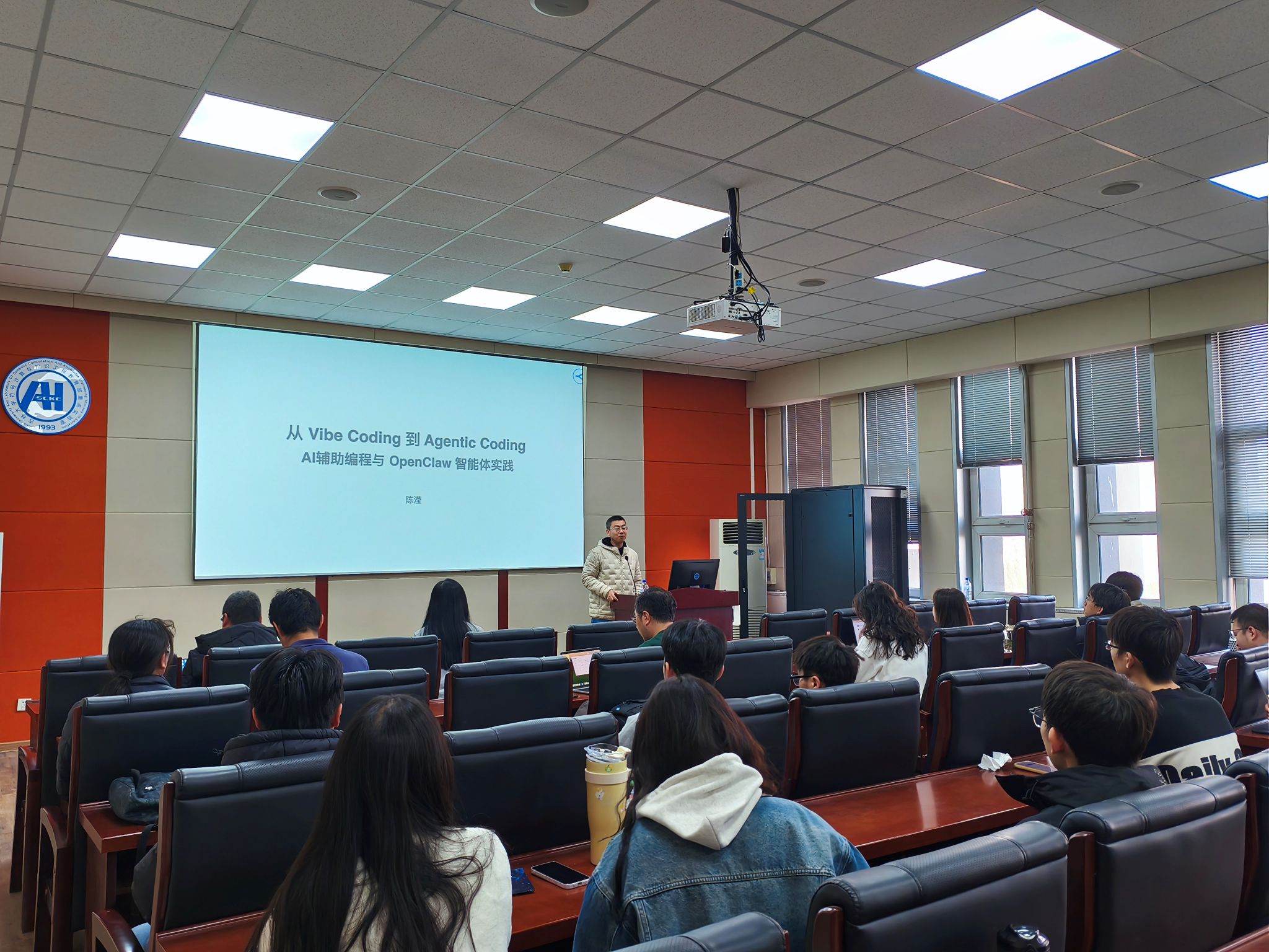 师生做了题为“从Vibe Coding到Agentic Coding:AI辅助编程与OpenClaw智能体实践”的学术报告。讲座由黄岚教授主持。