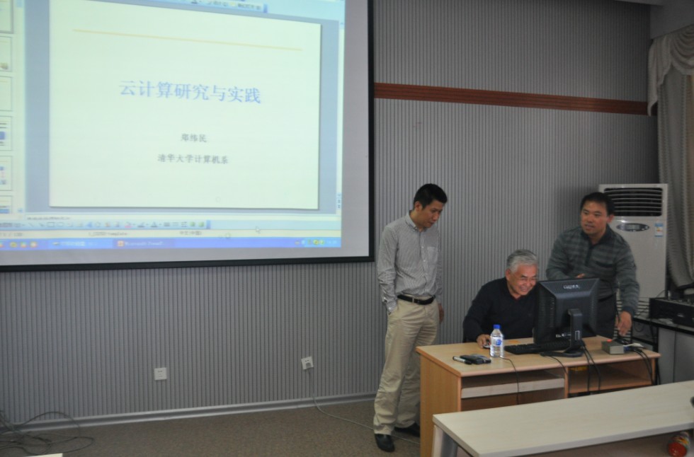 郑纬民教授作为云计算研究方面的权威,有着丰硕的研究成果。报告中,郑纬民教授首先将抽象的云计算定义具体化,为我们解释了什么是云计算。接着,他通过详细介绍清华大学在云计算方面的工作,从清华云存储MeePo、NOVA系统、3D游戏云、移动云计算平台、安全的数据中心、容灾云、海量数据处理课程以及大数据等八个方面,用生动的语言,形象的生活实例将高端技术通俗化,为我们做了深入浅出的报告,与我们分享了清华大学在云计算方面最前端的技术。报告会后,郑教授与师生们做了学术上的沟通,耐心的回答了师生们关于系统负载力、如何实现离线缓存等方面的技术问题。