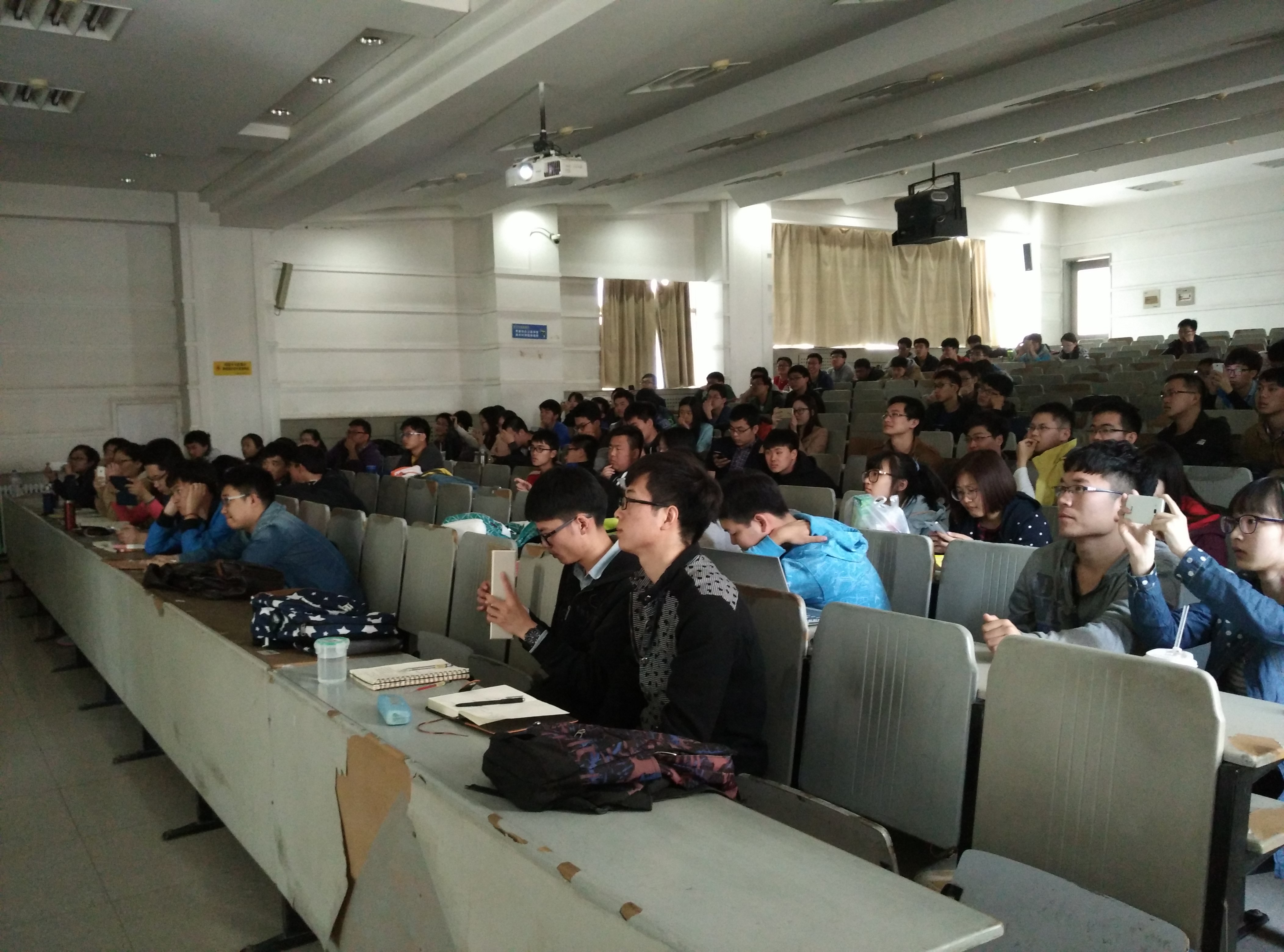黄岚副院长主持,赵宏伟教授主讲。2013级本科生和部分2012级本科生参加了会议。