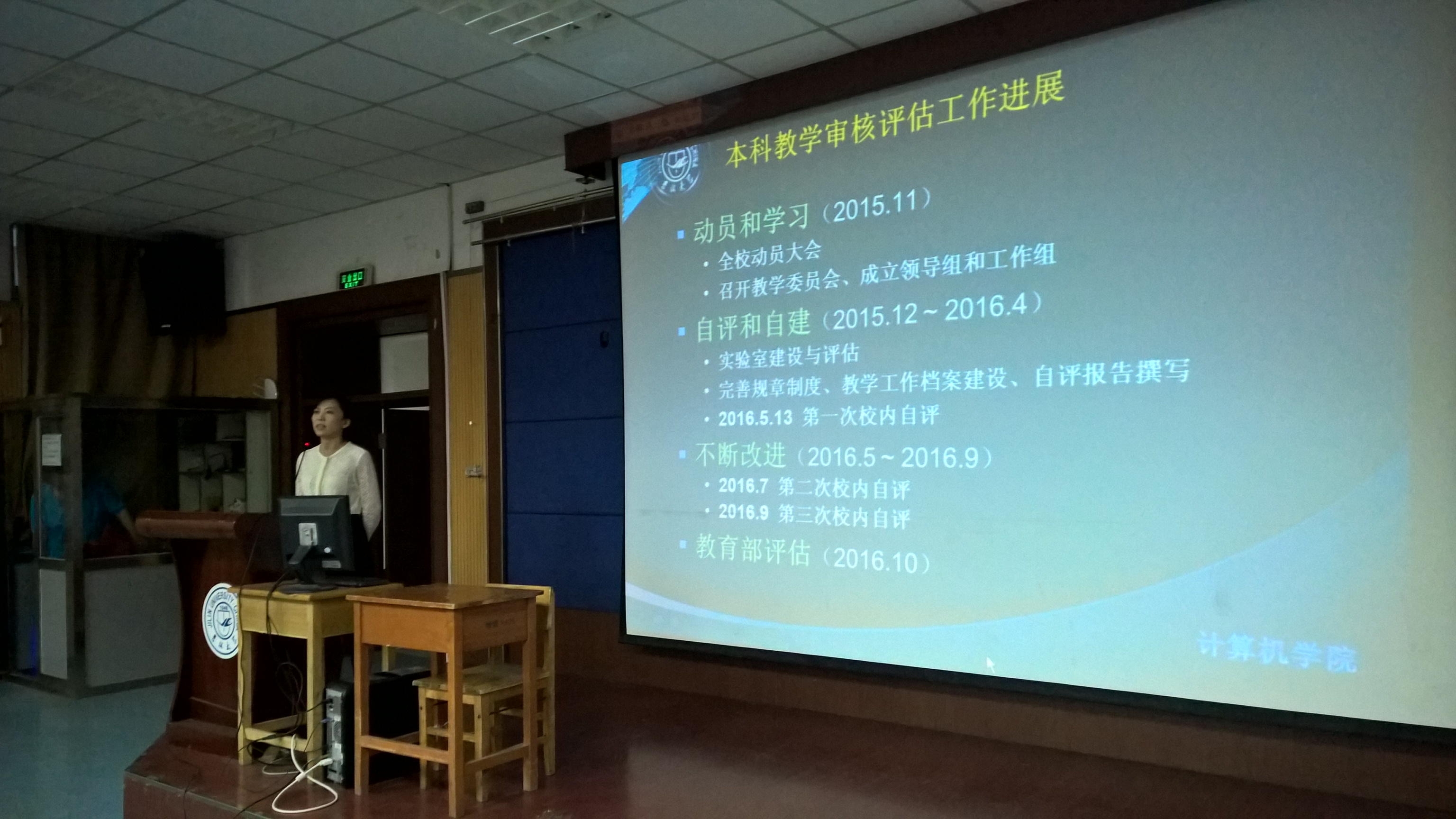 黄岚教授首先介绍了本科教学审核评估工作的进展,评估工作已完成了动员和学习、自评和自建两阶段工作,之后还将进行两轮校内自评并将于10月接受教育部的评估。在之前的校内自评中,计算机学院的各项教学工作获得了学校专家的认可,但仍有部分工作需要改进。黄岚教授根据审核评估指标体系,梳理了计算机学院的各项教学工作,并根据学校专家提出的意见总结了av天堂
