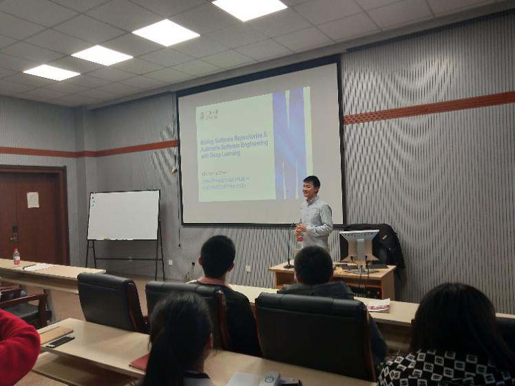 2018126日上午,来自澳大利亚Monash University的陈春阳老师在av天堂 计算机楼A521做了题为:“Mining Software Repositories & Automated Software Engineering with Deep Learning”的讲座报道。陈春阳老师博士毕业于新加坡南洋理工大学,师从邢振昌老师和刘扬老师。博士在读至今,陈老师积累了丰富的研究经验,其主要研究方向为:挖掘软件仓库、文本挖掘、深度学习以及人机交互。在多年的研究经历中,陈老师十多篇论文被国际顶级会议录用,且2016年的论文Similar TechASE评为Best Tool Model,同年另一篇论文被SANER评为当年的Best Research Paper。今年,陈老师的论文Deep Gauge又荣获ACM SIGSOFT杰出论文奖。