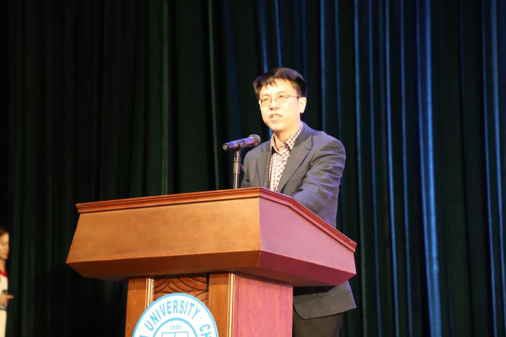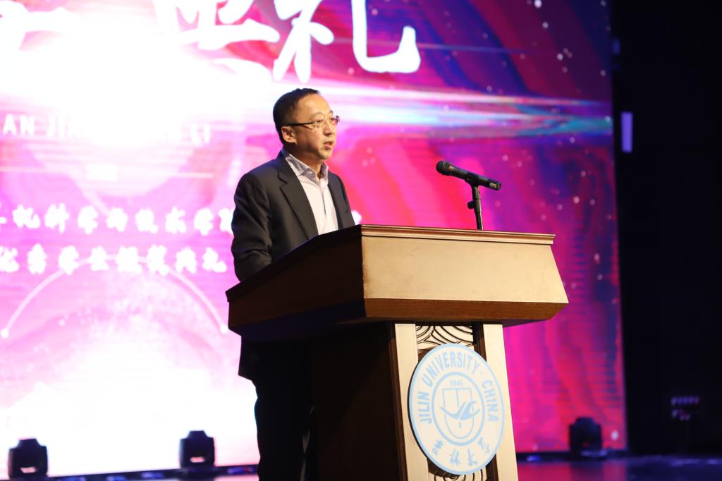 、软件学院院长,博士生导师魏晓辉教授致辞,魏院长介绍了学院发展史、学科现在发展情况,也对新同学提出了要求,给予了希望。至此,颁奖典礼结束,“放飞青春梦,缘系计软情”迎新晚会正式开始。