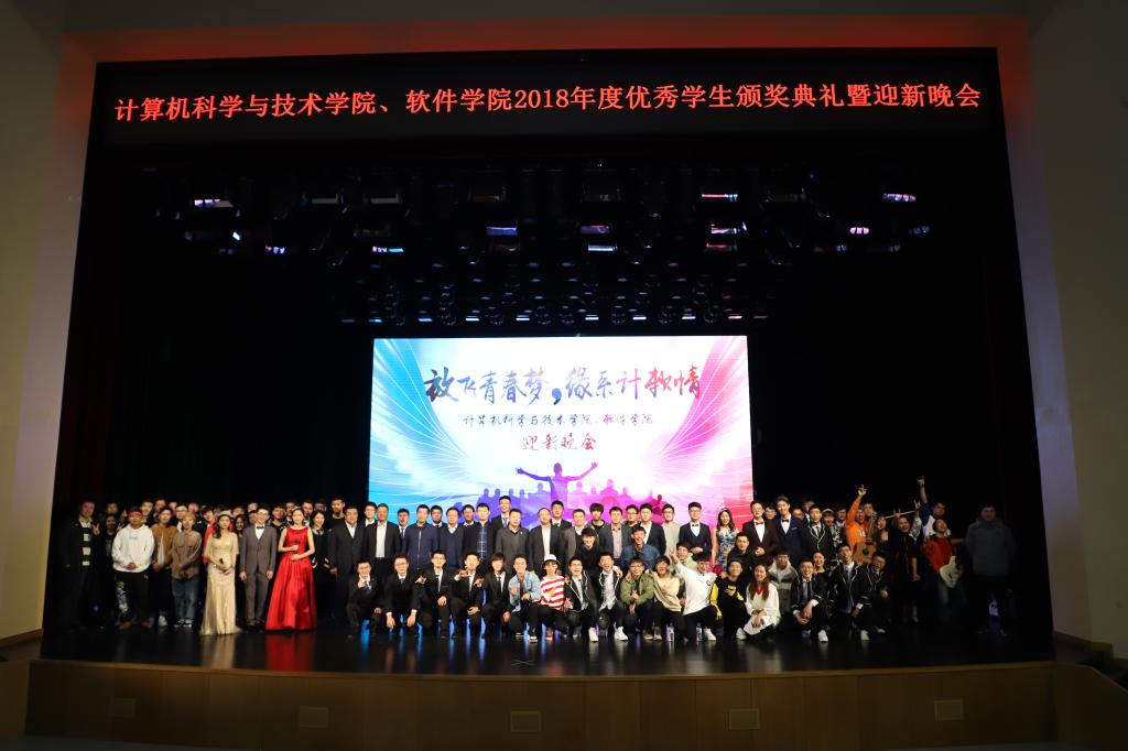 、软件学院在鼎新大讲堂联合举办了2018年度优秀学生颁奖典礼暨“放飞青春梦,缘系计软情”迎新晚会。出席晚会的嘉宾有学生工作部部长张国兴老师,研究生工作部副部长赵玥老师,教务处处长刘鹤老师,保卫处处长宫皓宇老师,学生就业创业指导与服务中心主任钟新老师,校团委书记代磊老师,av天堂