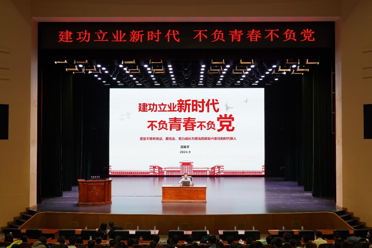 红色基因,发扬求实创新、励志图强的校训精神。宫皓宇老师对同学们的未来发展提出了殷切期盼。他强调作为新时代中国青年,一定要始终牢记习近平总书记的嘱托,将个人理想追求融入到党和国家事业之中。