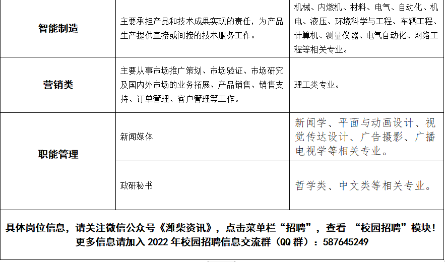 潍柴动力2022年春季校园招聘简章