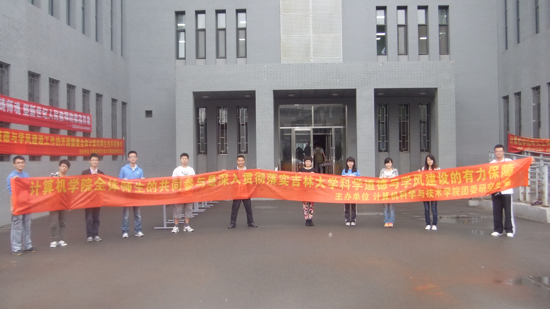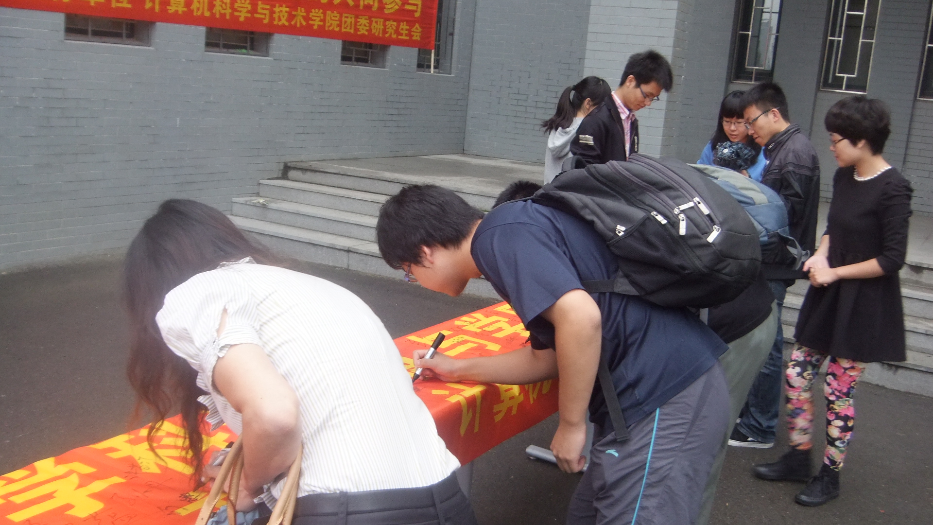 团委研究生会于9月12日,在计算机大楼门前举办了“做诚信学术以律己,传求是学风于万事”的签名活动。